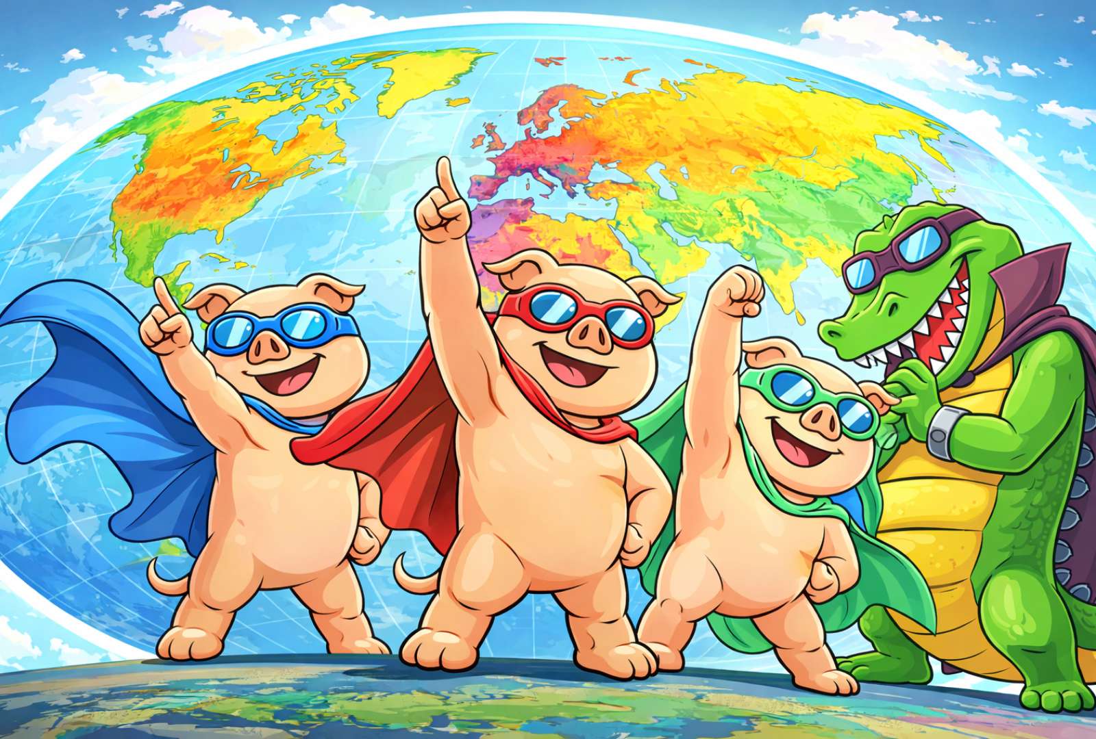 Super Ace Pig, the nearly de-facto leader of the Super Pig Bros, mostly because he's always got a plan. Ace is sharp, fast and stands his ground. Ace loves comics. He's a huge Batman and Superman fan. He believes the DC Universe is much better than Marvel. "Much, much better" he says!